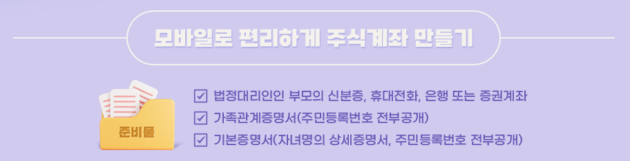 미성년자 자녀 주식 증권 계좌를 개설하기 위한 절차를 알려드리겠습니다.