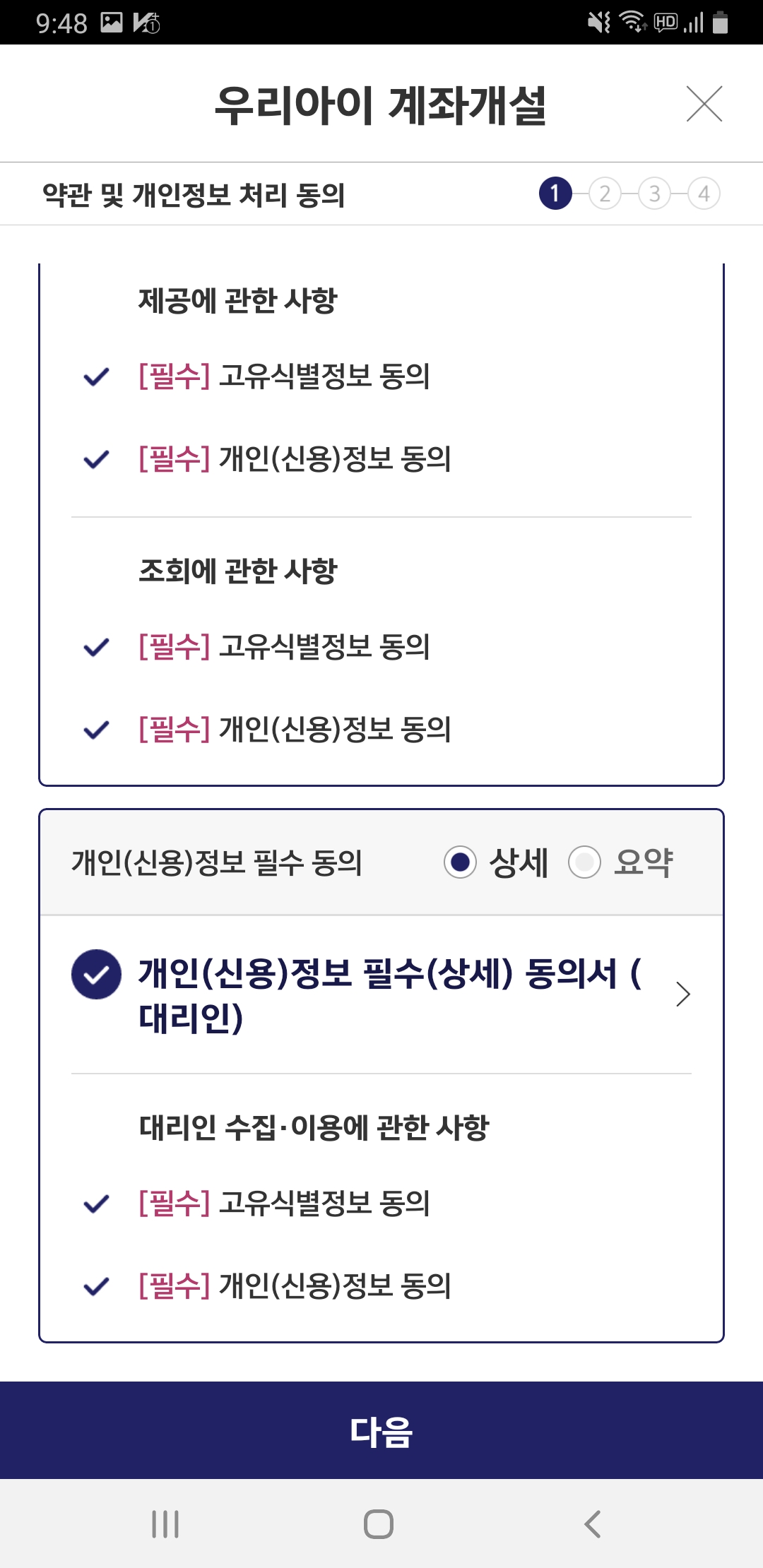 10. 여러가지 약관 필수 내용에 동의 버튼을 누른 후 다음 마지막에 다음을 클릭