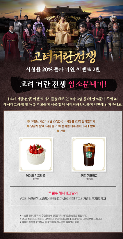 KBS에서 방영중인 역사드라마로 당대 최강국 거란과의 26년간의 전쟁을 승리로 이끌고 고려의 번영과 동아시아의 평화시대를 이룩한, 고려의 황제 현종과 그의 정치 스승이자 고려군 총사령관인 강감찬을 비롯한 수많은 영웅들에 대한 이야기가 펼쳐집니다.