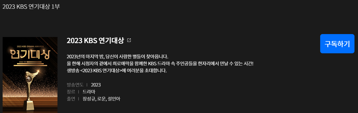 2023 kbs 연기대상 1,2부를 다시보기 위해서는 kbs에 간편 회원가입을 하고