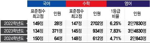 수학 표준점수 최고점 148점 > 지난해 보다 3점 상승